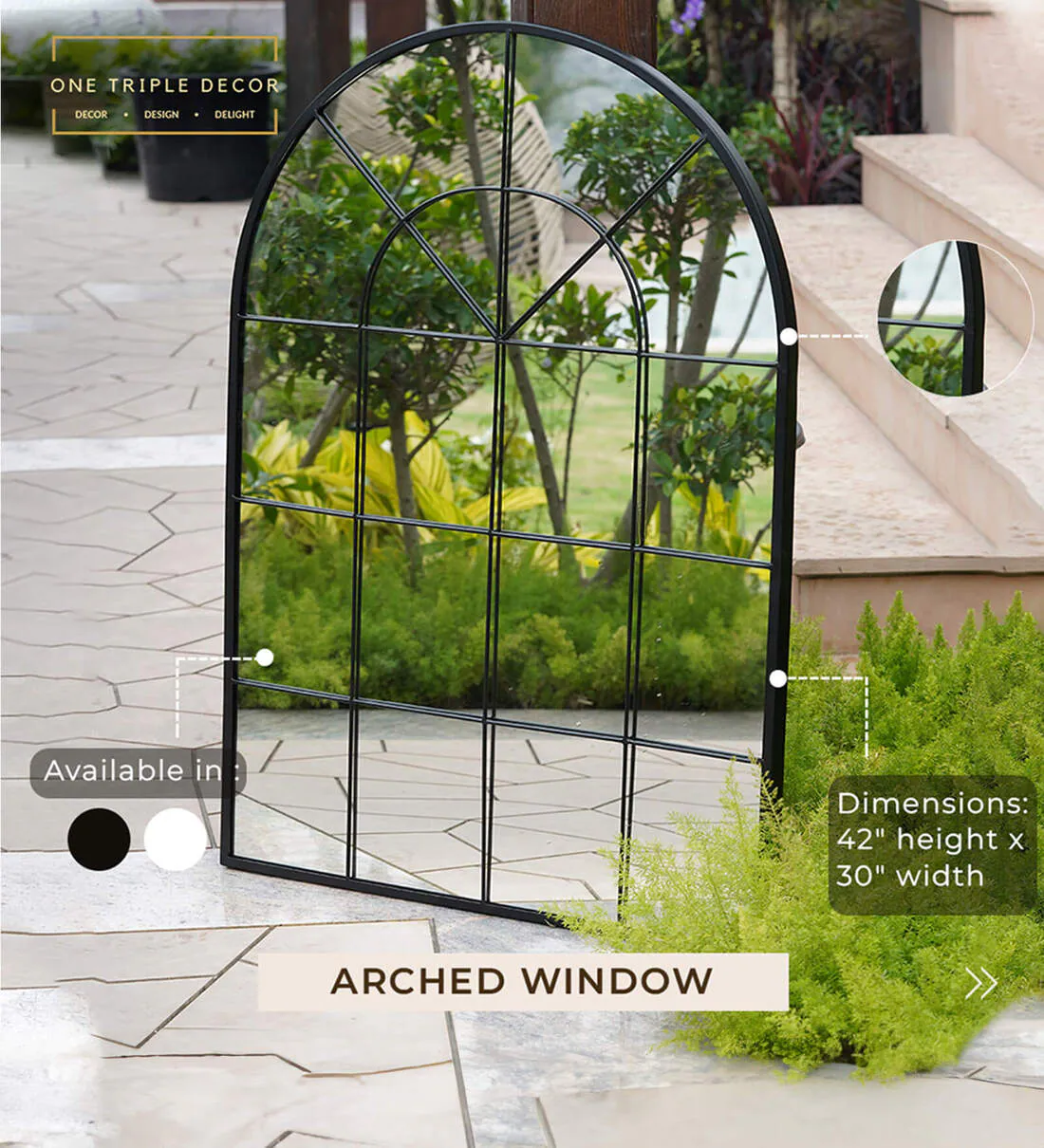 Black Arched Window Shaped Wall Mirror