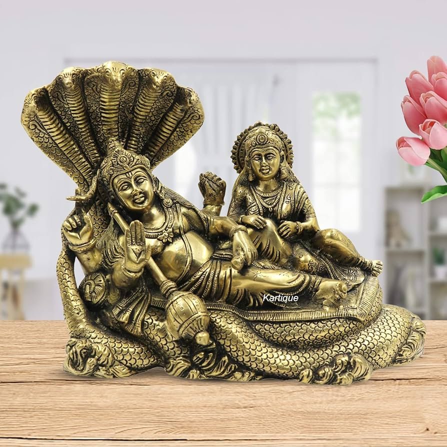 Bhagavan Vishnu and Devi Lakshmi Statue Murti Seated on Sheshnag