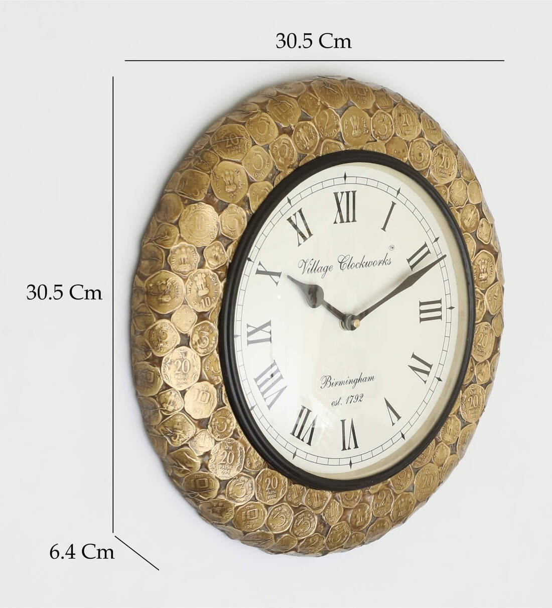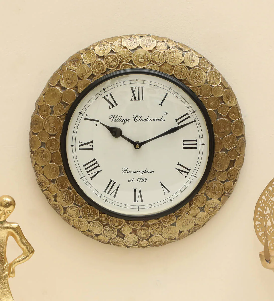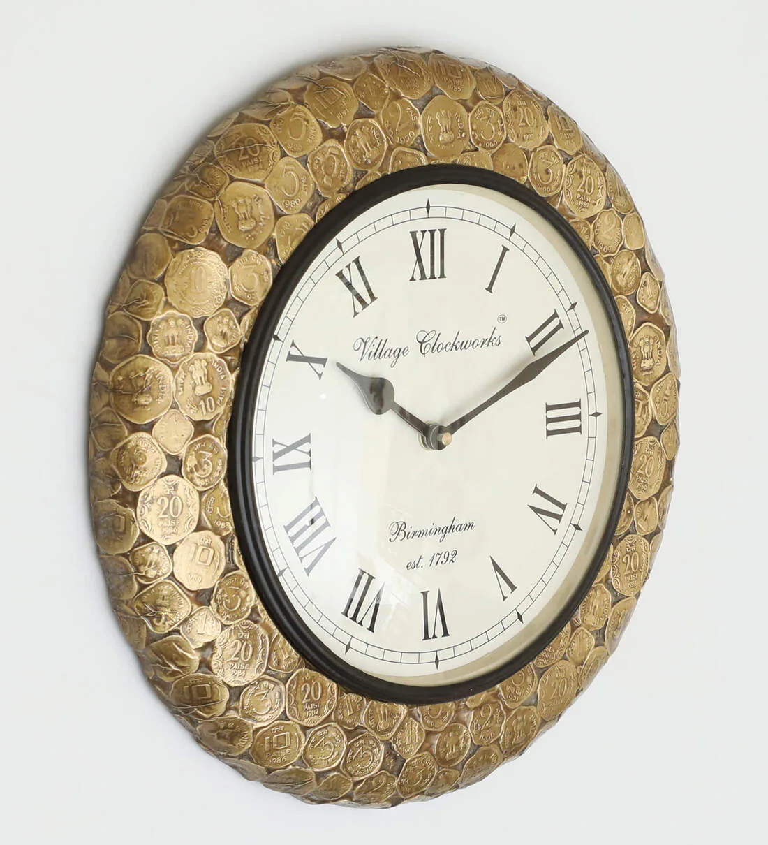 Rolling Coins Heritage Wooden Polished Wall Clock with Dial Small