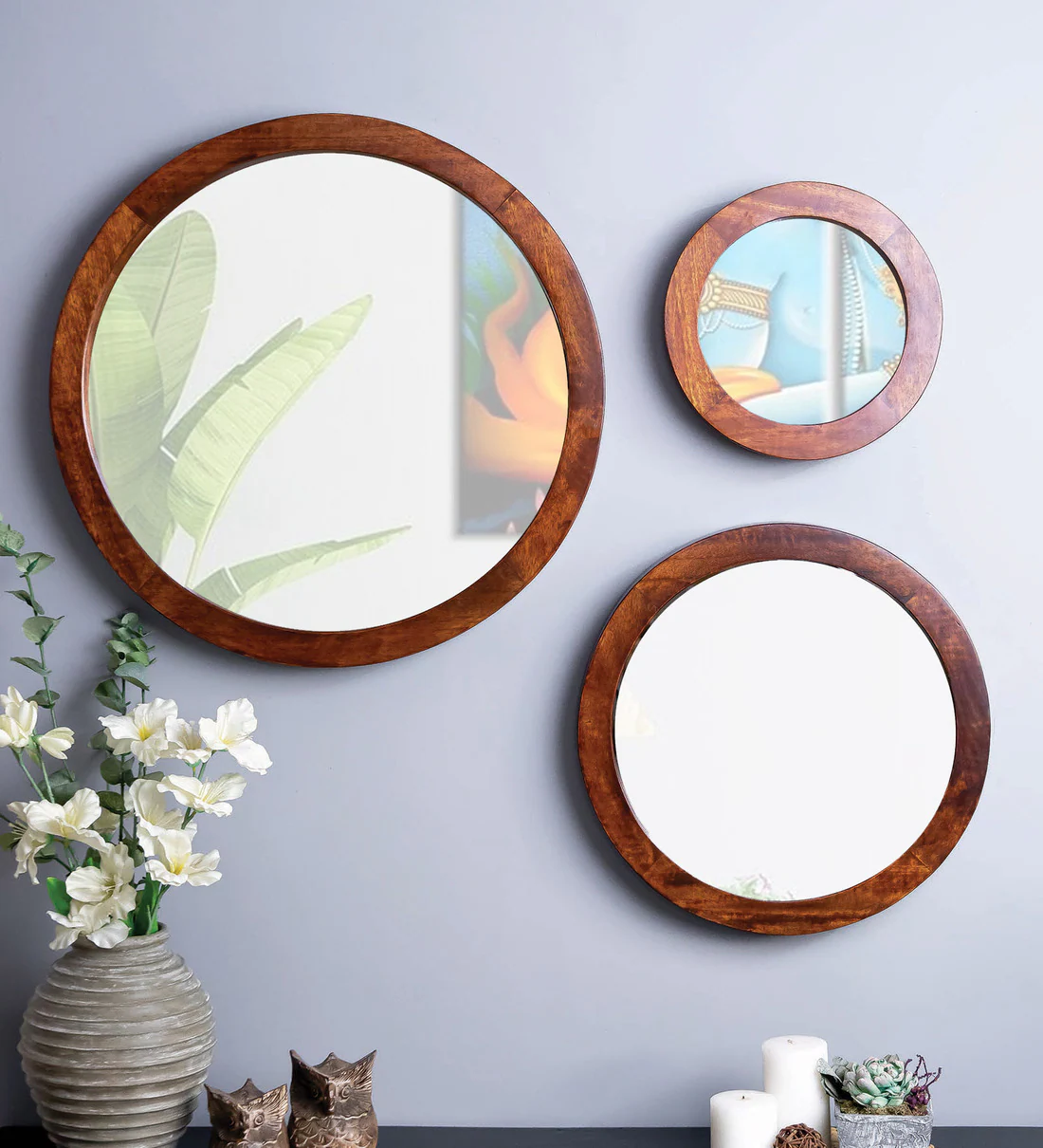 Walnut Glass (Set of 3) Decorative Mirrors